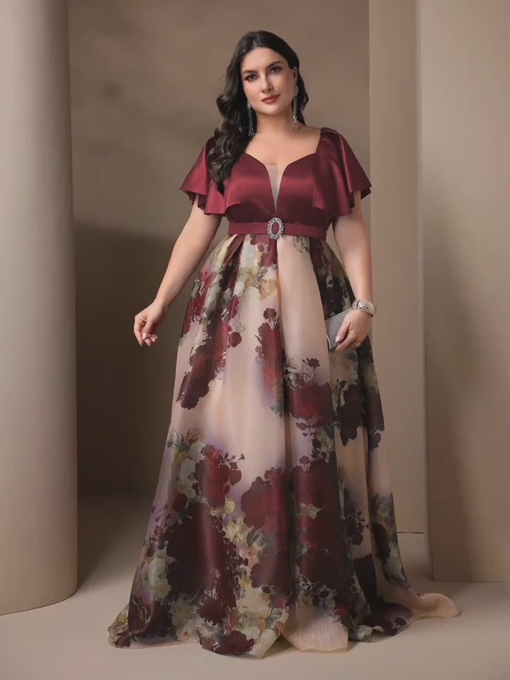 The flowing printed skirt showcases stunning floral patterns with a beautifully pleated design, creating a flattering silhouette for all body types. Ideal for cocktail parties, receptions, festive evenings, and special celebrations, this gown blends sophistication with effortless glamour.
